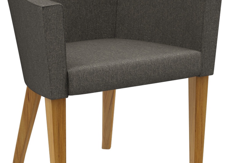 Kompakt und bequem ist auch der Polsterstuhl Dylan. Er ist mit Holzfüßen in Buche Nussbaum oder Eiche Natur erhältlich. Eine zweite Variante ist der drehbare Säulenfuß aus Edelstahl mit Rückstellmechanismus in Esstischhöhe. Das Polster aus Formschaum kann mit unterschiedlichen Stoffen bezogen werden.Artikelnummer